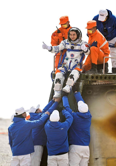 Three Chinese astronauts, or taikonauts, the second team sent to orbit for space station construction, have completed their six-month mission and returned to Earth safely on Saturday.